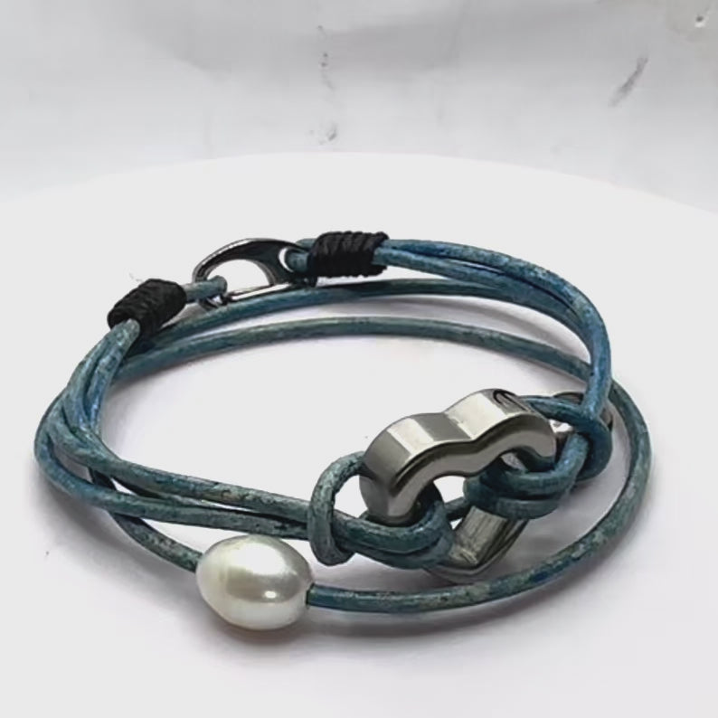 This exquisite unique handcrafted piece, combines elegance with a touching tribute to your loved one. Our double wrap leather cremation bracelet features 2mm round cords that beautifully embrace your wrist, while the centerpiece holds a small heart-shaped stainless steel urn for ashes, symbolizing eternal love and cherished memories.
